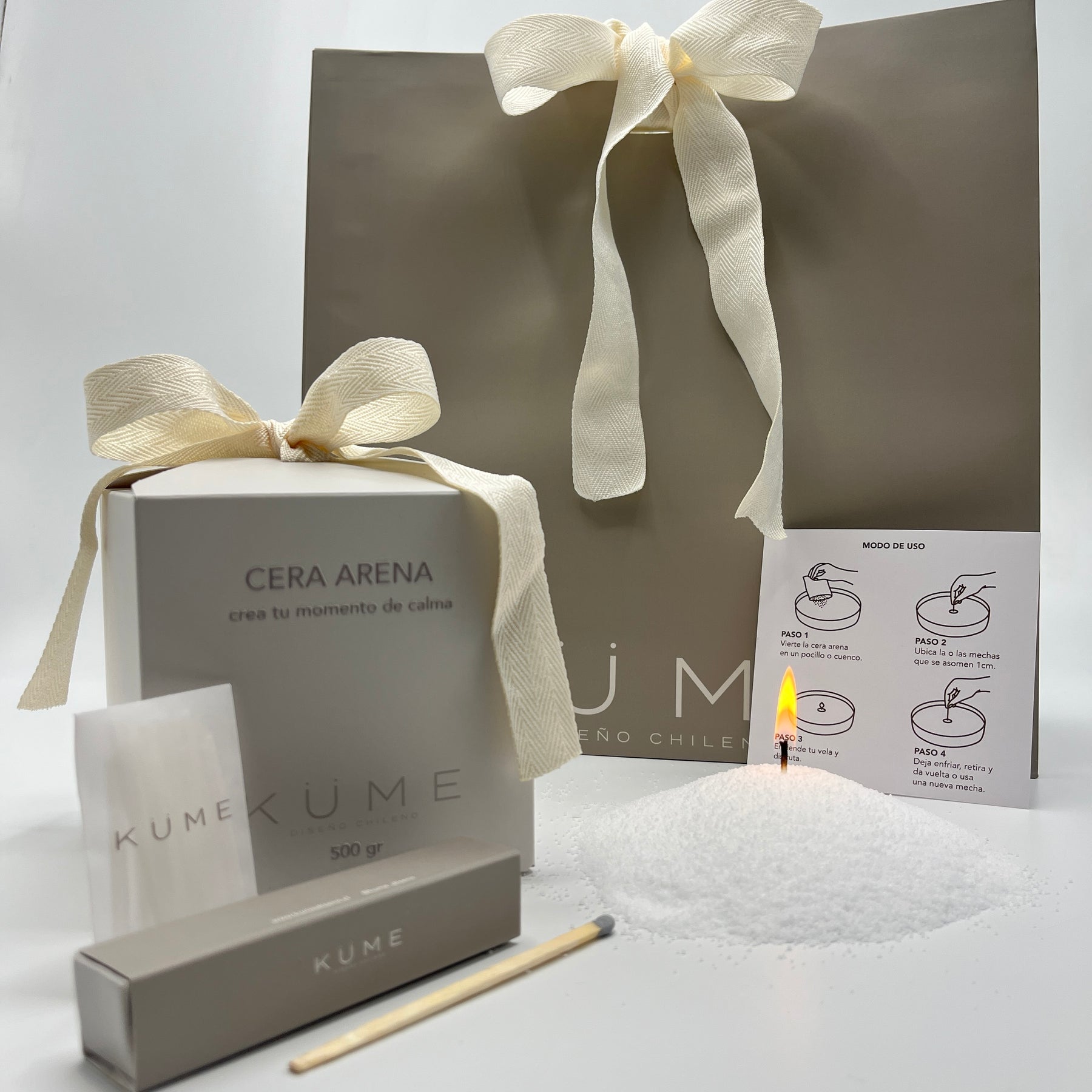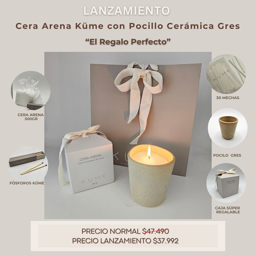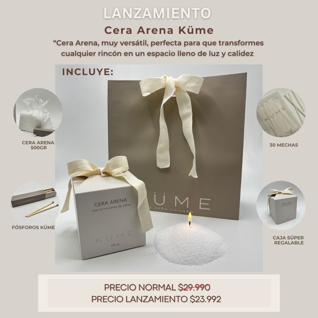 La puedes llevar con o sin el pocillo. Nuestra versátil cera arena tiene 500gr de cera vegetal para crear y personalizar tu vela fácil y rápida, se adapta a cualquier contenedor. Sólo vierte la cera en el recipiente, pon una o varías mechas dependiendo del formato y disfruta de una preciosa vela creada por ti. Incluye 30 mechas de 5cm y una caja de fósforos largos Küme.