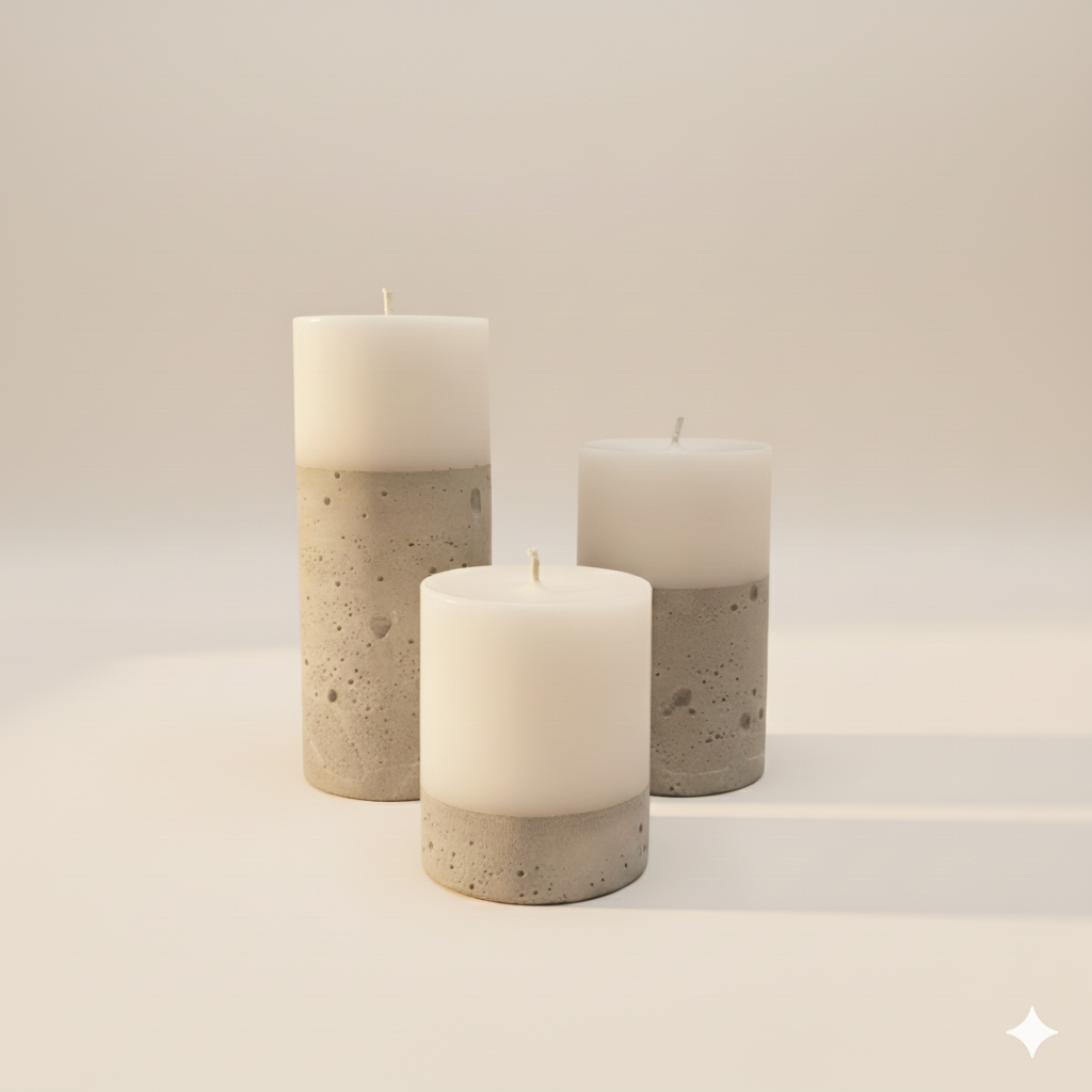 Velas fabricadas con parafina refinada, mecha de algodón y hormigón fino que no mancha ni se deshace.